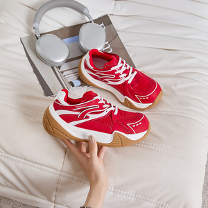 女性のための赤い厚底道徳トレーニングシューズ 2025 秋の新ファッションストラップソリッドカラー多用途フォレストシューズニッチスタイル