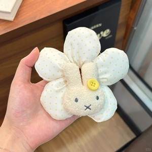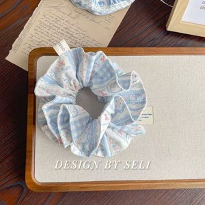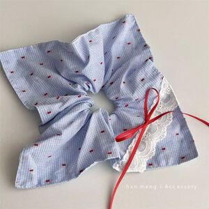 ミルクブルーと白のウサギ柄・ハンカチ(シングルリボン付き)