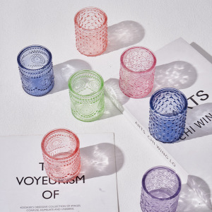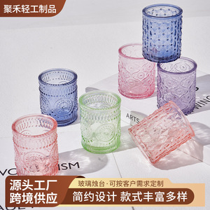 クロスボーダーひまわりダイヤモンドパターン円筒透明マルチカラークリエイティブ多目的ガラスアロマキャンドルホルダーワックスカップワックスホルダーテーブル