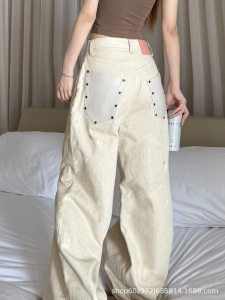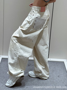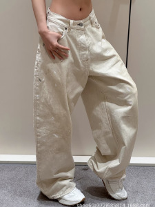 Wu Xuan Yi の同じスタイル 25 初秋レトロニッチデザイン汚れた染めスプラッシュインク手描きルーズストレートワイドレッグジーンズ女性用