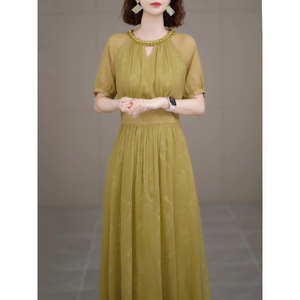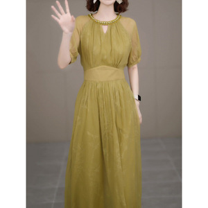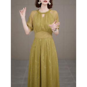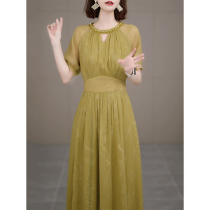 ハイエンドのファッショナブルで軽い高級ドレス女性のための 2025 夏の新しい気質ルーズウエスト痩身ラウンドネックロングスカート