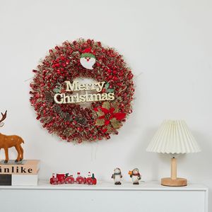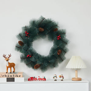 新款圣诞花环40cm松果跨境led发光橱窗门挂花圈圣诞节装饰品