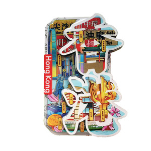 [文化的で創造的な必需品] 香港木製金属冷蔵庫マグネットクリエイティブ磁気中国都市スタイル DIY 旅行お土産