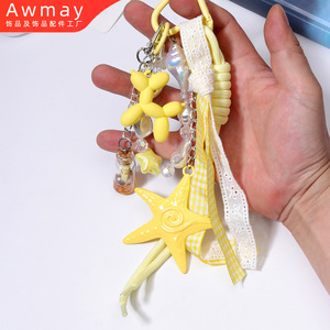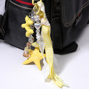 跨境现货百搭时尚夏日风海星编织绳miu系风格包包挂件挂绳蕾丝