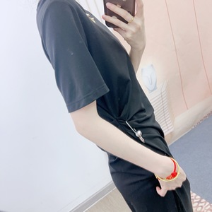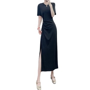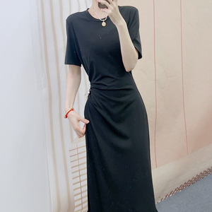 2025夏気質万能韓国風着痩せシンプル半袖ロング膝上ワンピース058