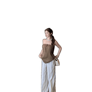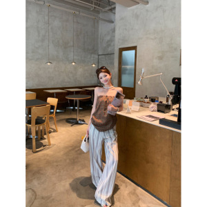 辣妹复古格子直筒半裙可多穿抹胸上衣+条纹长裤套装女