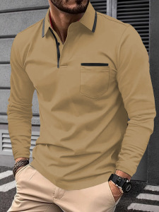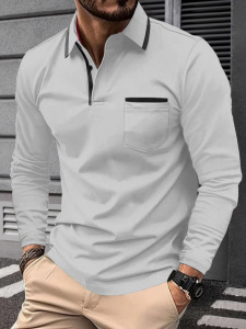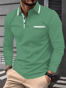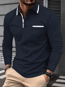 2025 アマゾン新クロスボーダーファッションラペルコラージュボタンメンズビジネスカジュアル長袖ポロシャツ