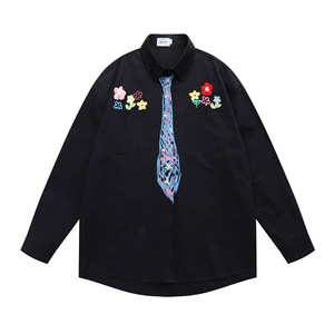 ニッチグラフィティ手描きネクタイ長袖シャツメンズアメリカンレトロ秋オールマッチルーズカジュアルシャツジャケット