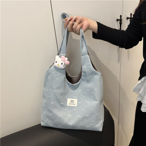 2025 夏の新カジュアルデニムリボントートバッグ学生クラス通勤軽量大容量トートバッグ