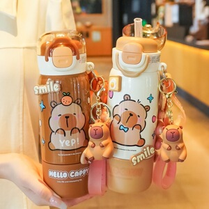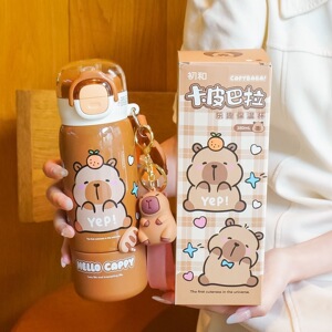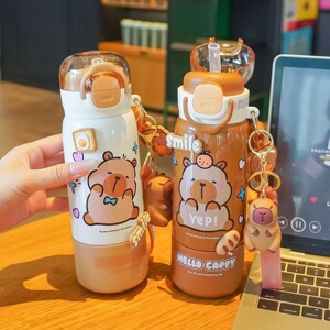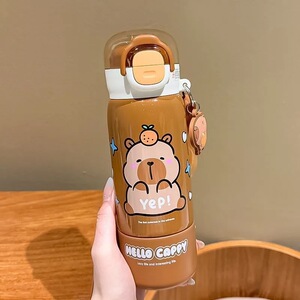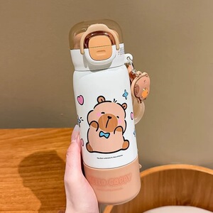 カピバラ 子供用魔法瓶カップ 女子通学専用 ランドセルややかんに収納可能 かわいい小学生用ストローカップ