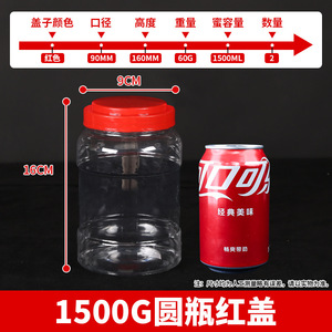 赤キャップ付き携帯用丸型ボトル1500g【5本入】 水容量1000g(中キャップ付属)
