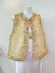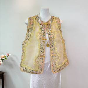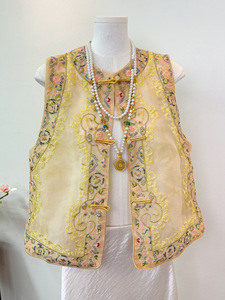 2025夏季复古百搭上衣新中式国风马甲女重工刺绣欧根纱薄款马夹女