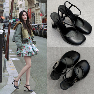 Dami LYW 同型スクエアトゥバックオープン浅口シングルシューズ 2025 春秋新作ワンラインハイヒールレディーススティレットヒール