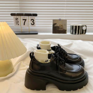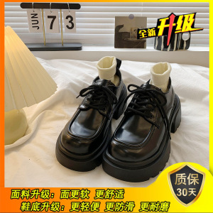 黑色增高百搭小皮鞋2025春秋季新款系带jk英伦风复古厚底粗跟单鞋