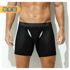 耐摩耗性脚延長バージョン男性下着アイスネット通気性メッシュスポーツ男性四隅ランニングボクサーブリーフ男性ミッドパンツ