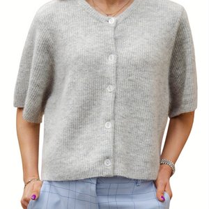 2025跨境别致的浅蓝色女士开襟衫,休闲短袖,纽扣设计