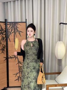黑色开衫+绿色连衣裙【两件套】