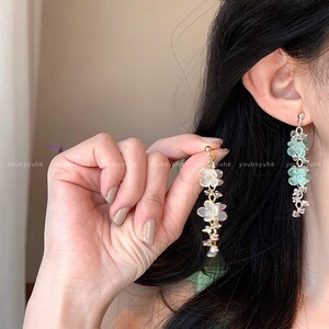 夏季多巴胺小清新长款流苏耳环女超仙百搭气质花朵耳钉网红耳饰品