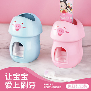 子豚歯磨き粉絞り器クリエイティブ漫画子供用歯ブラシ収納ラックパンチフリー歯磨き粉ホルダースクイーザー歯ブラシ