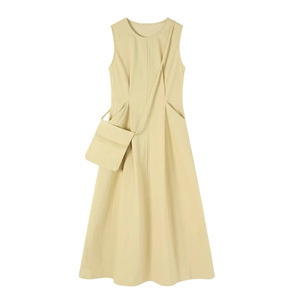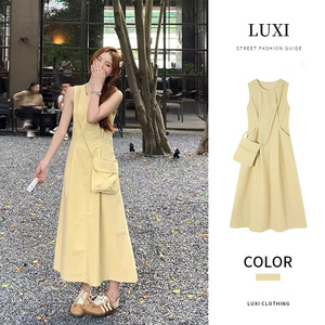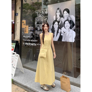 純粋で優しいノースリーブドレス女性用2025夏日本語と韓国語バージョンラウンドネックウエスト痩身Aラインベストロングスカート