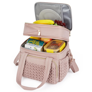 断熱ランチバッグ 女性用 漏れ防止ランチボックス ランチトート 取り外し可能なショルダーストラップとサイドポケット付き ランチパック