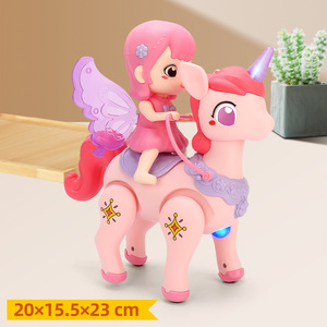 儿童电动公主独角兽小马车卡通摇摆动物行走灯光音乐玩具地摊批发
