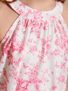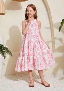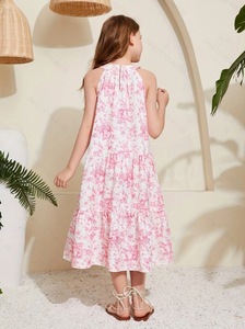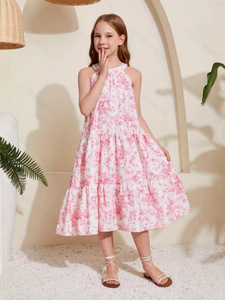 外贸童装女孩休闲dittsy花卉吊带脖子花卉印花无袖休闲度假礼服