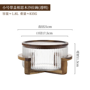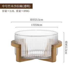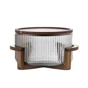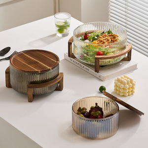 日式耐冷热竖纹玻璃竹架木架点心水果沙拉展示盘餐厅户外野餐拍照