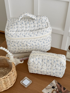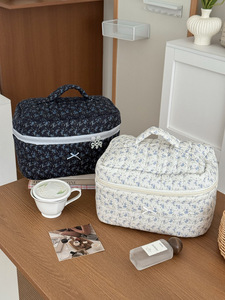クロスボーダーダークナイトブラックとホワイトフローラル化粧品バッグ、高価値、新鮮、シンプルでエレガントな大容量トイレタリーバッグ