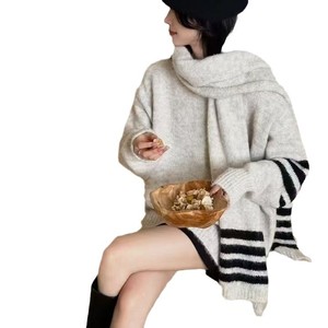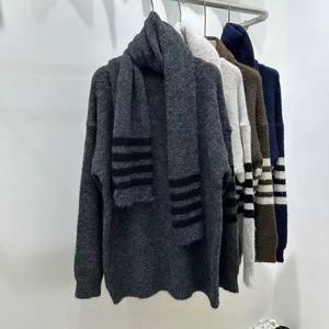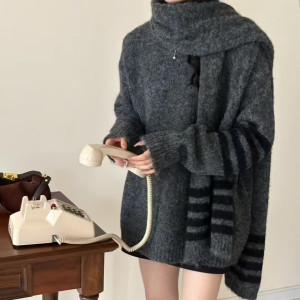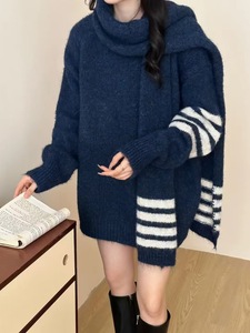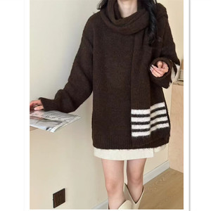 2025秋冬新款韩版撞色复古条纹百搭宽松韩系针织两件套优质毛衣女
