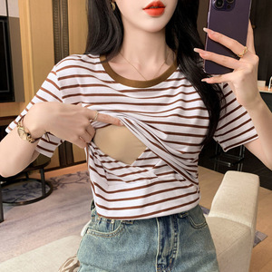 お出かけ用の夏用授乳服、授乳服の外でも着られるホットママ半袖Tシャツ、授乳服、トレンドママ服