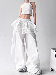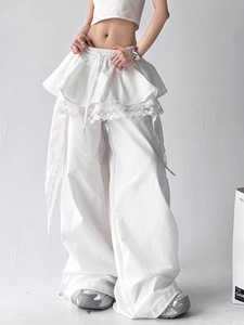 ホワイトパンツレディース夏薄い2025レイヤードスカートデザインワークウェアカジュアルパンツレディースニッチステッチ