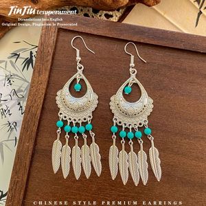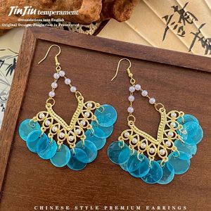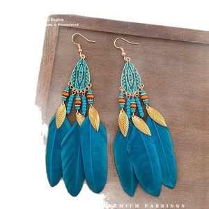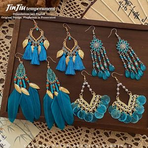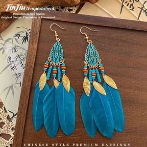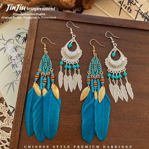 民族风蓝色羽毛流苏耳环2025新款爆款波西米亚度假风绝美独特耳饰