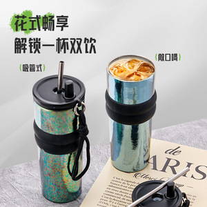 新款纯钛便携提手吸管杯大容量汽车杯高颜值女保温杯保温保冷批发