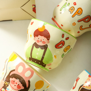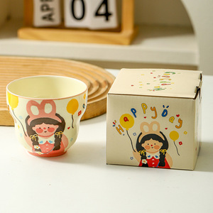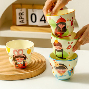 コーヒーカップ、4人家族、家庭用セラミックカップ、かわいい漫画の朝食カップ、イベントギフト、お土産カップ
