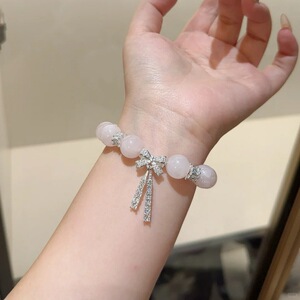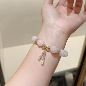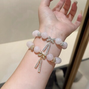 丝带恋语天然粉水晶流苏手串大咪数轻奢高级感精致名媛风直播批发
