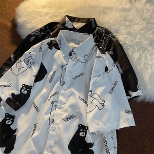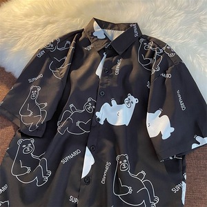 2025 新プリントフルプリント半袖シャツ女性の怠惰なスタイルルーズレトロ香港スタイル夏半袖シャツ