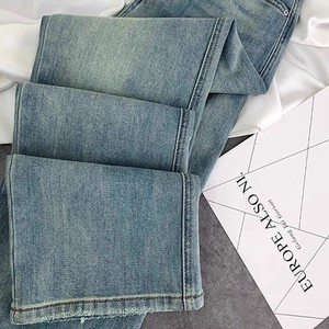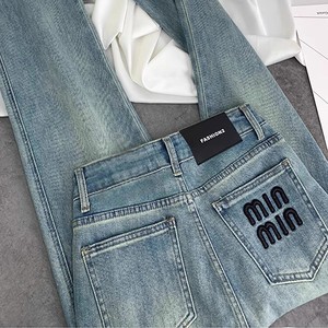 妙臻【四面弹】高腰牛仔窄版阔腿裤子女潮刺绣修身显瘦89高弹显瘦
