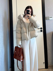 パフダウンジャケット女性の 2025 冬の新韓国スタイルショートフード付きルーズパンジャケット厚く暖かいジャケット