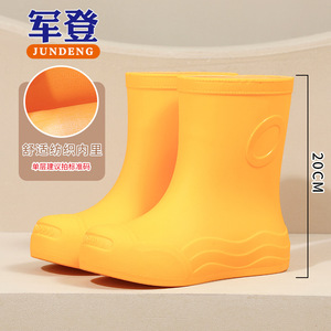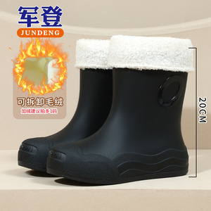 クロスボーダー貿易ファッションレインブーツ女性用ミッドチューブ防水ウォーターシューズ暖かい滑り止め大人のフラットヒールレディースレインブーツラバーシューズ