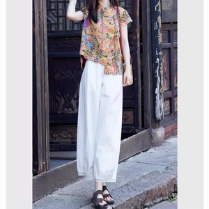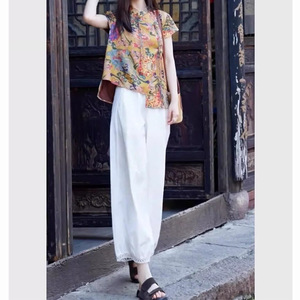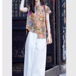 2025超人気夏服、ユニークで超見栄えの良いトップス、高級感のある新しい中国風の民族風スーツ、女性用黄色の花柄シャツ