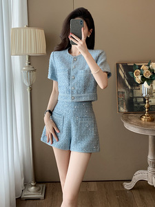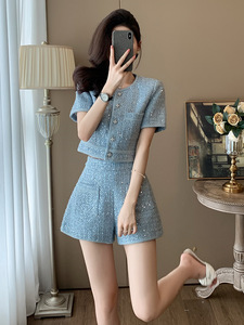 Xiaoxiangfengスーツレディース夏ハイエンド小柄な気質年齢軽減西洋スタイルファッショナブルなトップとショーツ2点セット