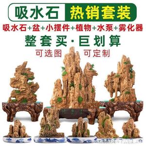 天然吸水石原石上水石石山盆景假山鱼缸造景摆件中大型流水微景观