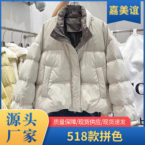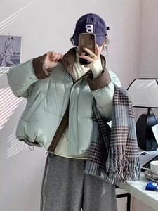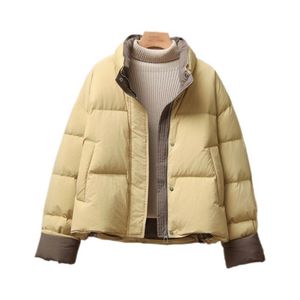 518 カラーブロック 2025 新しいスタンドカラー ショート長袖ジッパー シンプルな女性の軽量ショートコットンコート厚手のコート
