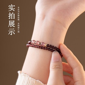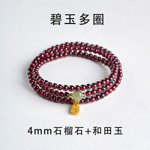 女性用ナチュラルバーガンディマルチサークルガーネットブレスレット、新しい中国風の祝福カード、ホータン翡翠転送ビーズ、絶妙で軽い高級ブレスレット