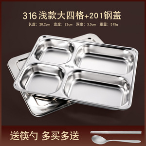 食品グレードの 316 ステンレス鋼のファーストフードプレート、大人用の 5 つのコンパートメント、カバー付きの大人用食堂ライスプレート
