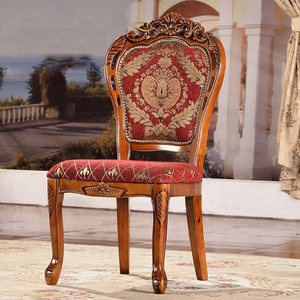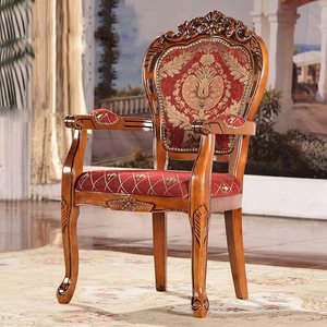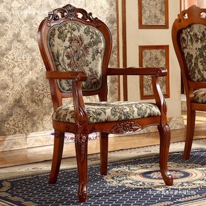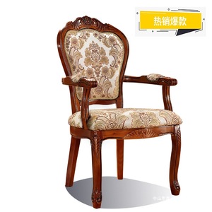 アメリカンカントリーダイニングチェア無垢材彫刻布アームチェアホテルレストランダイニングチェアヨーロピアンスタイルソフトパッケージダイニングテーブルチェア