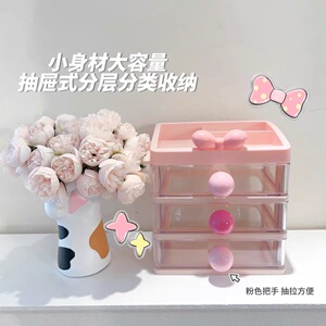 抽屉式桌面收纳盒透明带分格高颜值化妆品收纳架头饰文具置物盒
