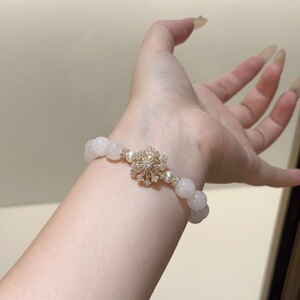 エーデルワイス天然ピンククリスタルブレスレット絶妙なライト高級ハイエンドブレスレットクマの宝珠 Douyin 爆発的な人気の卸売