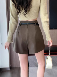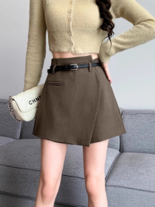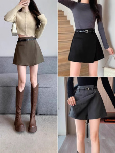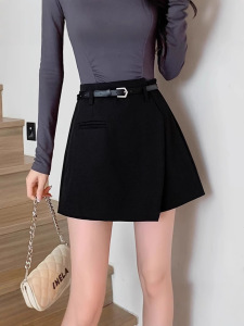 2025新款春夏季外穿不规则高腰显瘦西装a字阔腿短裤裙黑色短裤女
